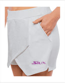Apari cu eleganță și încredere pe terenul de padel cu fusta Siux Jacquard Albă. Această fustă stilată, cu un logo Siux roz închis, nu doar că oferă un design atemporal, dar și un confort suprem în timpul jocului.